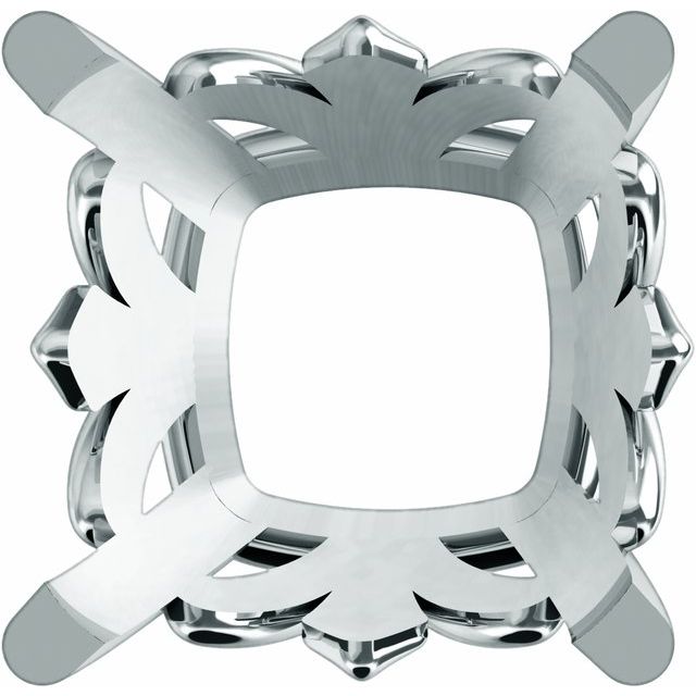 14K White Gold 5×5 mm Cushion 4-Prong Fleu-de-Lis Basket Setting