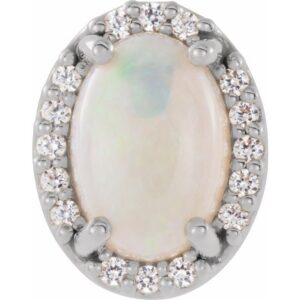 14K White Gold 6×4 mm Oval 4-Prong Halo-Style Cabochon Earring Setting