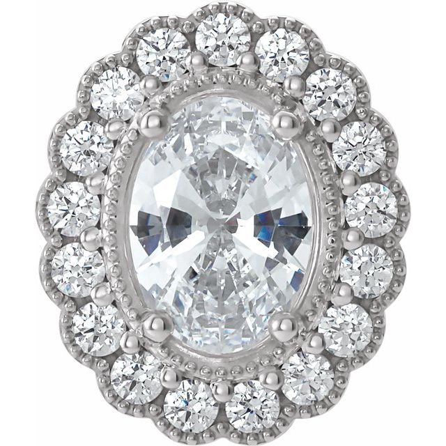 14K White Gold 6×4 mm Oval 1/5 CTW Natural Diamond Semi-Set Halo-Style Peg Setting