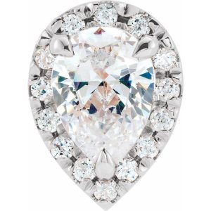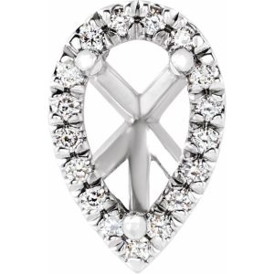 14K White Gold 6×4 mm Pear .06 CTW Natural Diamond Semi-Set French-Set Halo-Style Shank Setting