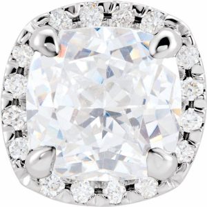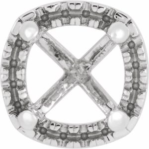 14K White Gold 5×5 mm Cushion 4-Prong Claw French-Set Halo-Style Shank Setting