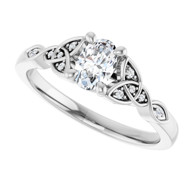 14K White Gold 6×4 mm Oval .04 CTW Natural Diamond Semi-Set Celtic-Inspired Engagement Ring