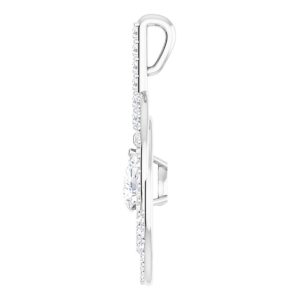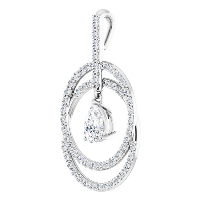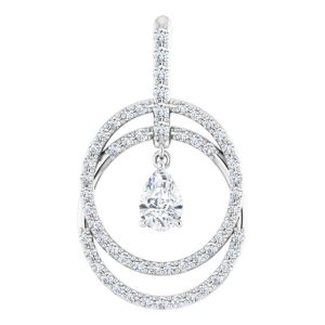 14K White Gold 6×4 mm Pear Double Row Circle Pendant with Articulated Dangle