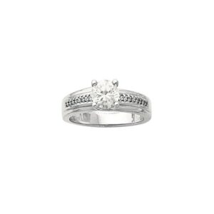 14K White Gold 6.5 mm Round Accented Engagement Ring