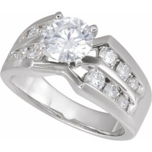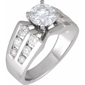 14K White Gold 6.5 mm Round Accented Engagement Ring Mounting