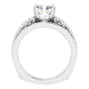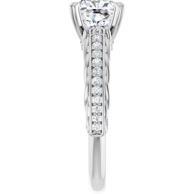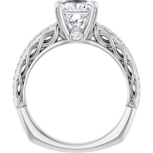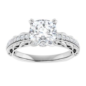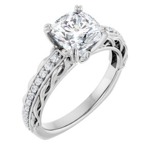 14K White Gold 7×7 mm Cushion Engagement Ring Mounting