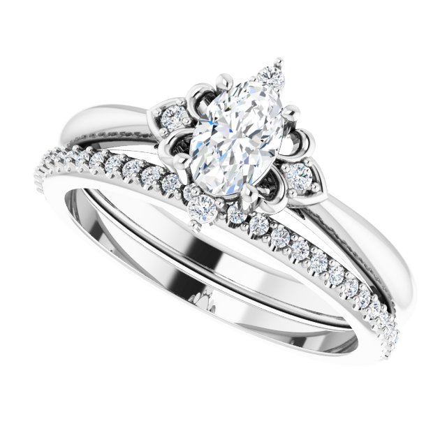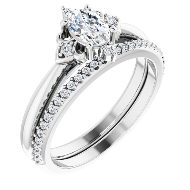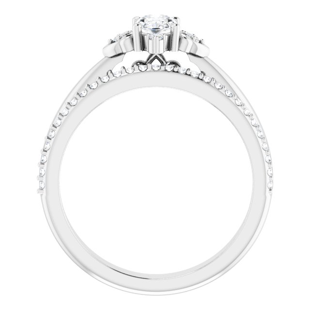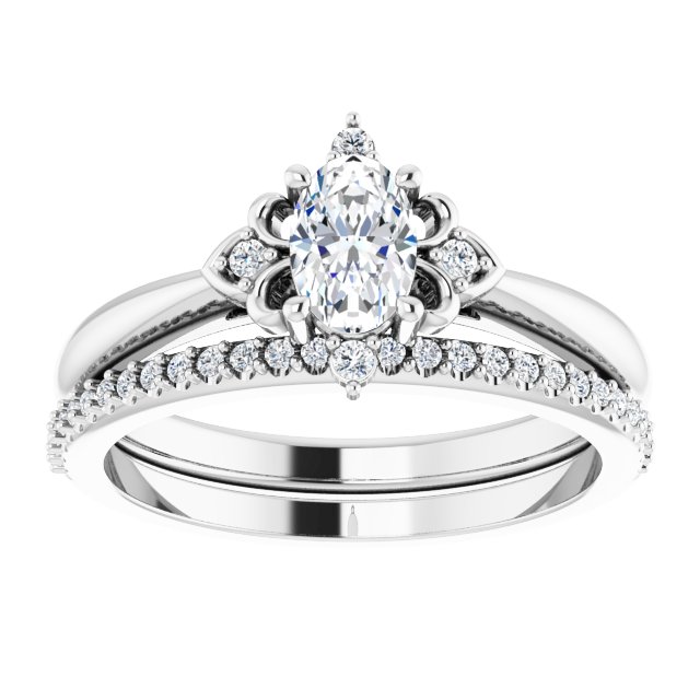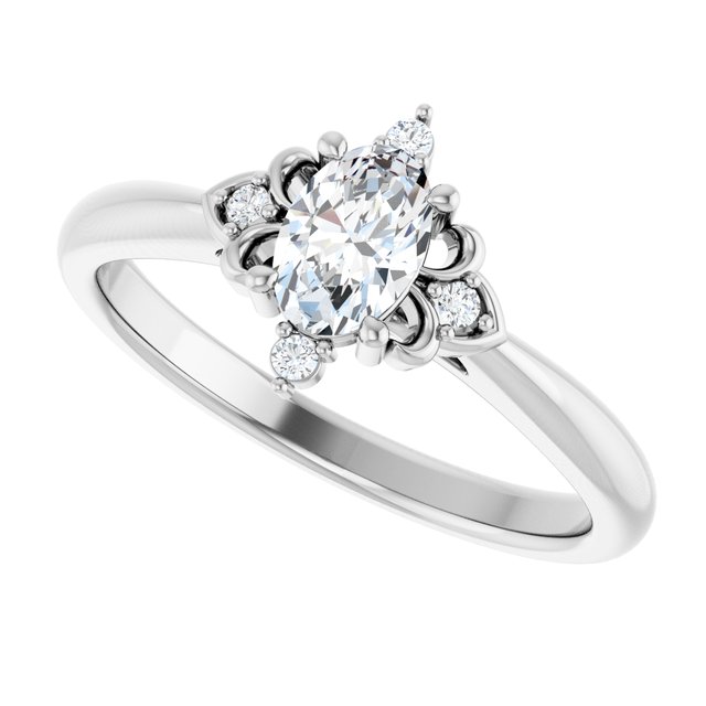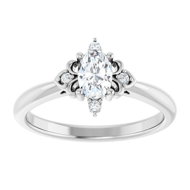 14K White Gold 6×4 mm Oval Accented Engagement Ring Mounting