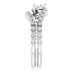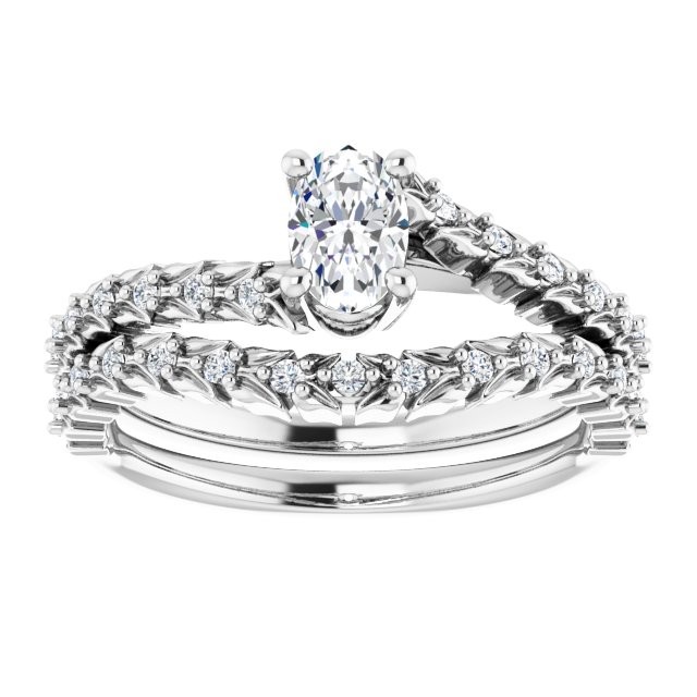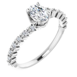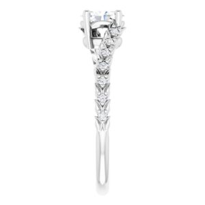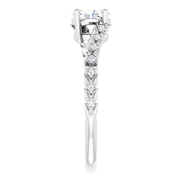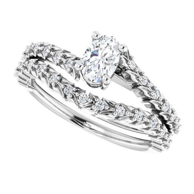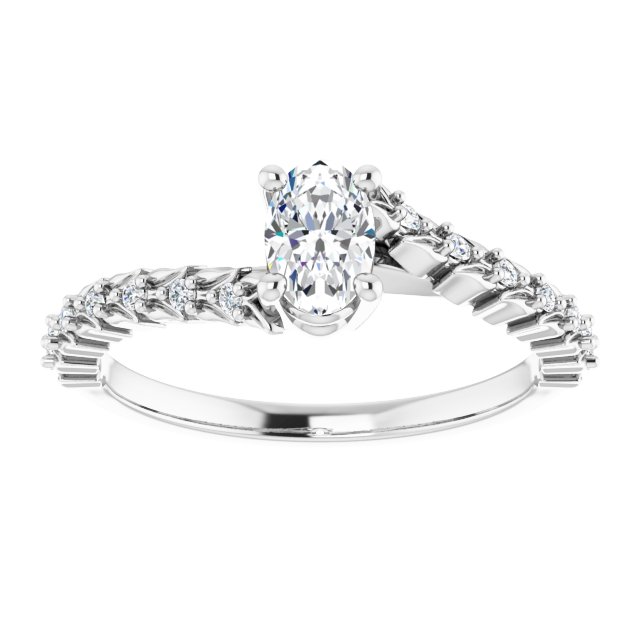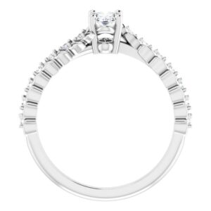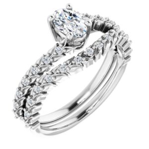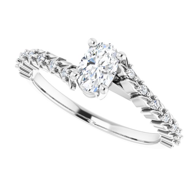 14K White Gold 6×4 mm Oval 1/10 CTW Natural Diamond Semi-Set Accented Vine Inspired Engagement Ring