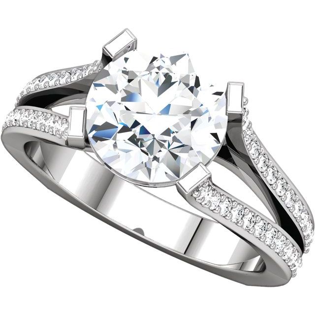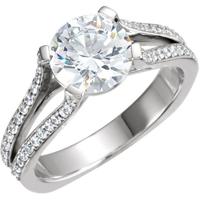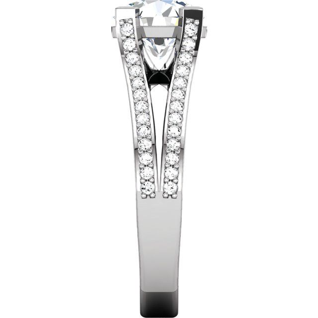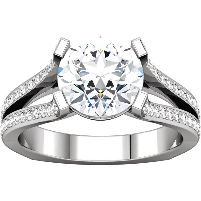14K White Gold 5.8 mm Round Accented Engagement Ring Mounting