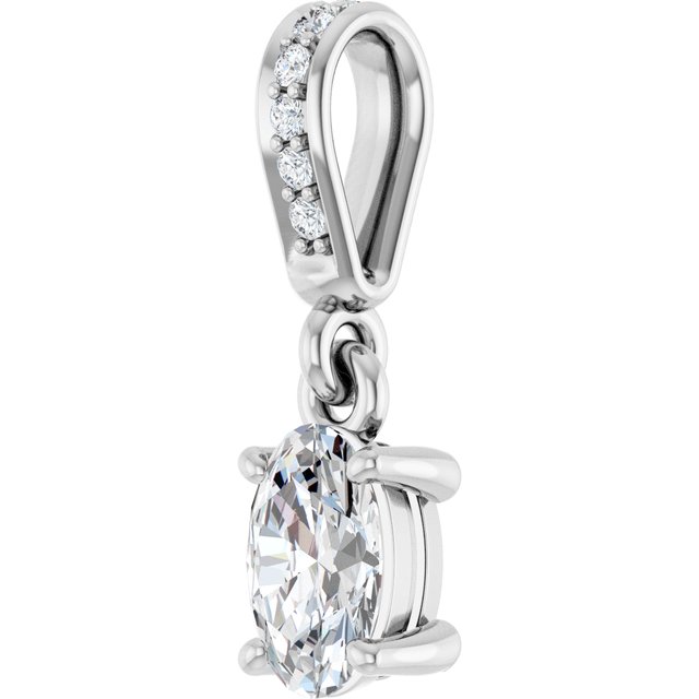 14K White Gold 6×4 mm Oval .025 CTW Natural Diamond Semi-Set Charm/Pendant