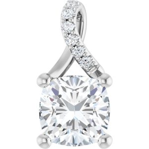 14K White Gold 7 mm Cushion Pendant Mounting