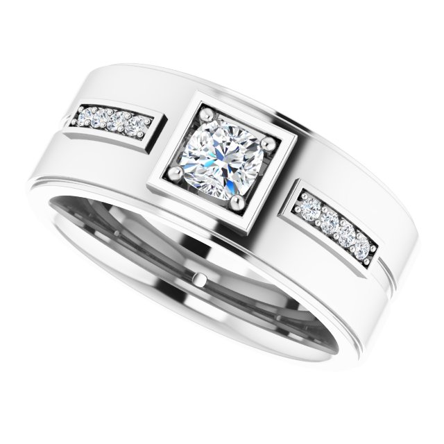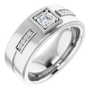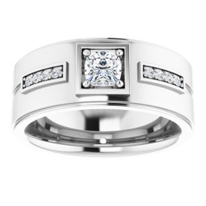 14K White Gold 5 x 5 mm Cushion Mens Band Mounting