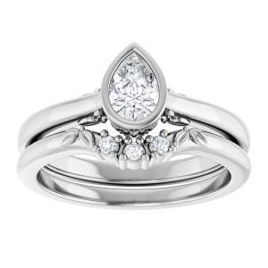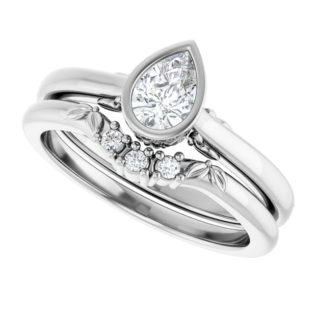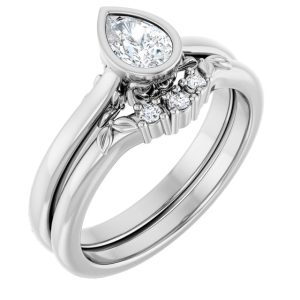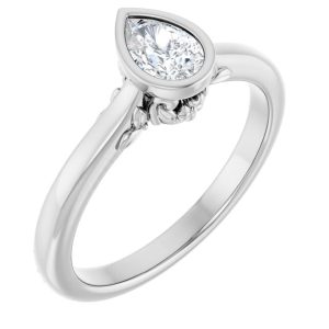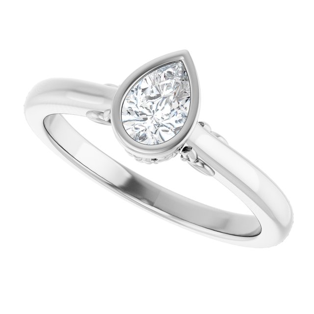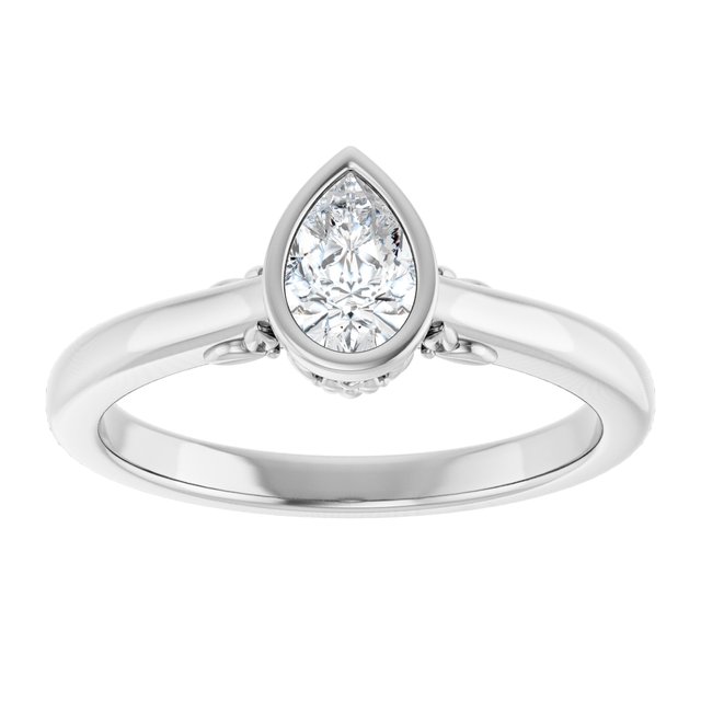 14K White Gold 6×4 mm Pear Solitaire Engagement Ring Mounting