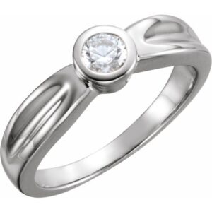 14K White Gold 4.1 mm Round Bezel-Set Solitaire Engagement Ring