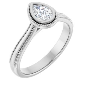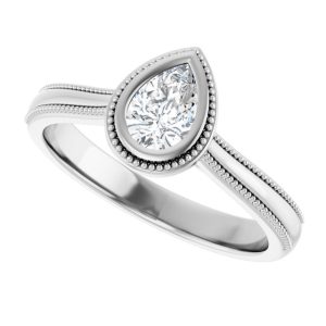 14K White Gold 6×4 mm Pear Solitaire Engagement Ring Mounting