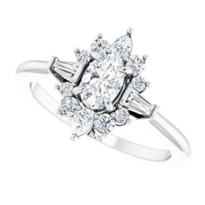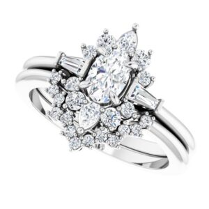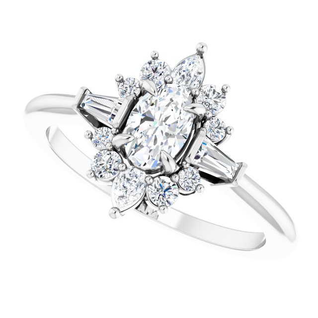 14K White Gold 6×4 mm Oval 3/8 CTW Natural Diamond Semi-Set Engagement Ring