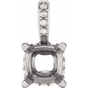 14K White Gold 7×7 mm Cushion .05 CTW Natural Diamond Semi-Set Pendant