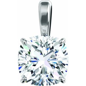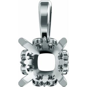 14K White Gold 7 mm Cushion 4-Prong Pendant Mounting