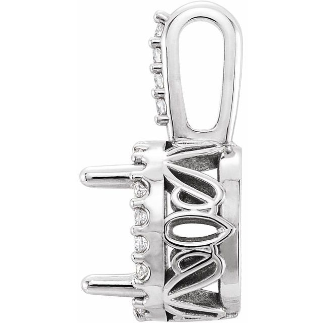 14K White Gold 7×7 mm Cushion 1/8 CTW Natural Diamond Semi-Set Halo-Style Pendant