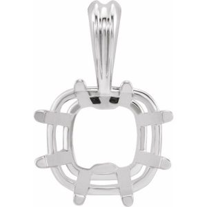 14K White Gold 5×5 mm Cushion 8-Prong Pendant Mounting
