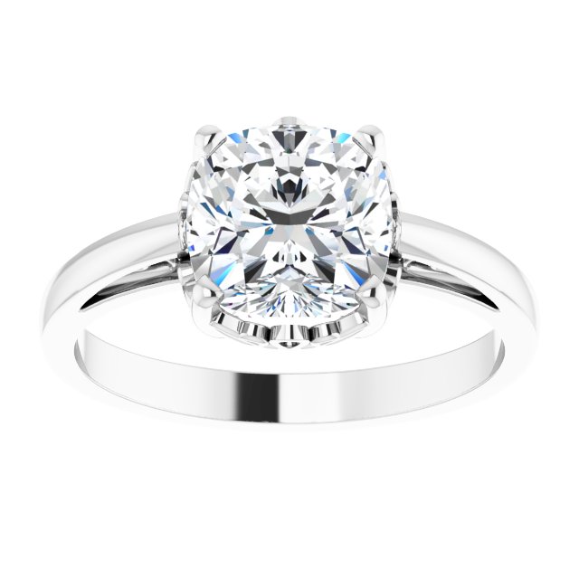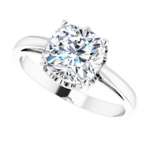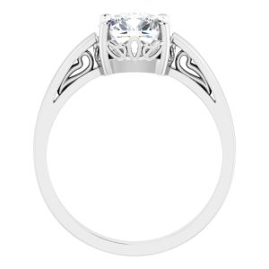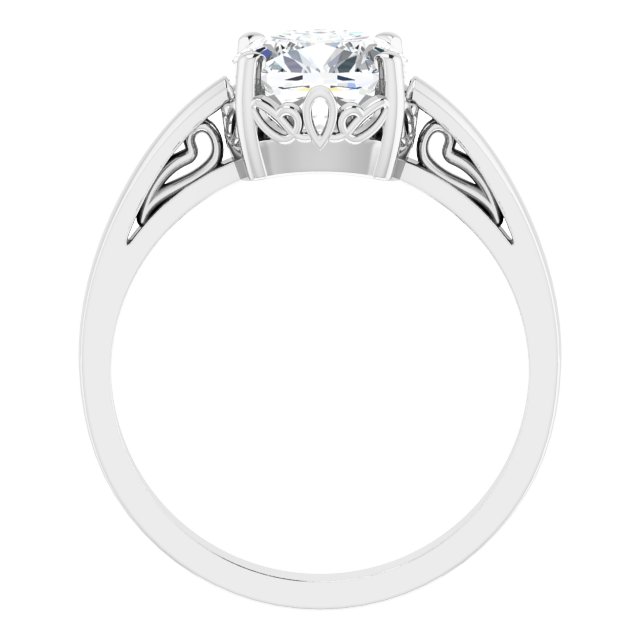 14K White Gold 7 mm Cushion Scroll Setting® Ring Mounting