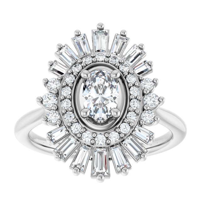 14K White Gold 6×4 mm Oval Halo-Style Engagement Ring Mounting