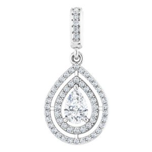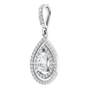 14K White Gold 6×4 mm Pear Halo-Style Pendant Mounting