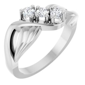 14K White Gold 3-Stone Family Criss-Cross Ring Mounting