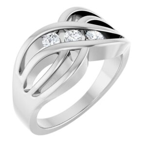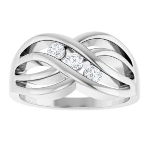 14K White Gold 3-Stone Family Criss-Cross Ring Mounting
