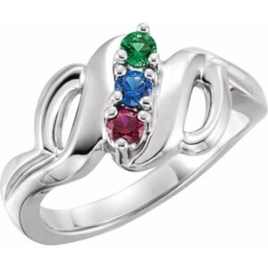 14K White Gold 3-Stone Family Freeform Ring Mounting