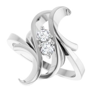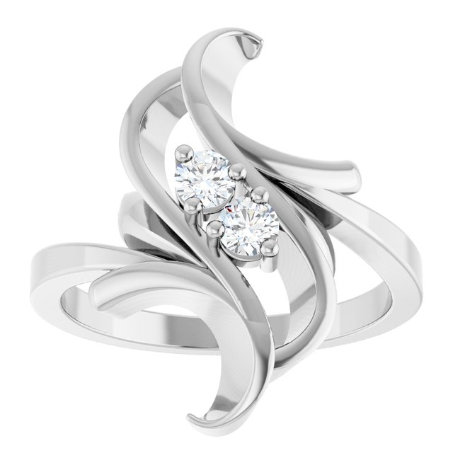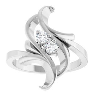 14K White Gold 2-Stone Family Freeform Ring Mounting