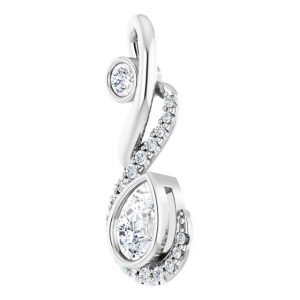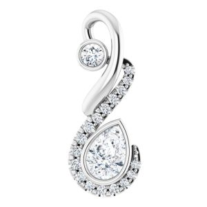 14K White Gold 6×4 mm Pear Accented Freeform Pendant Mounting