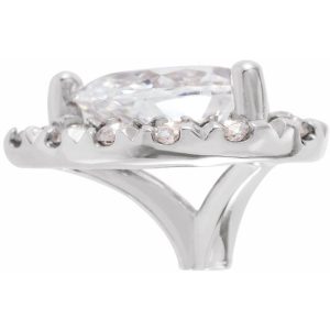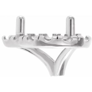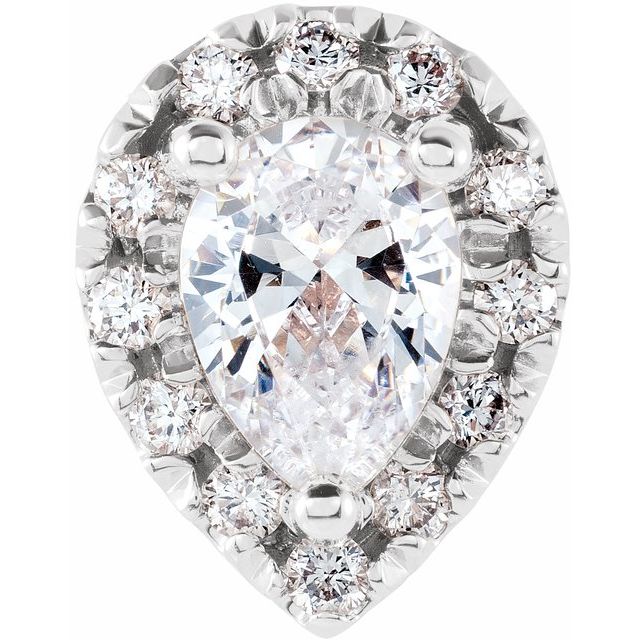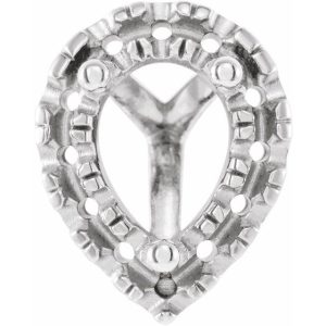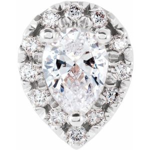 14K White Gold 6×4 mm Pear 3-Prong Claw French-Set Halo-Style Earring Setting