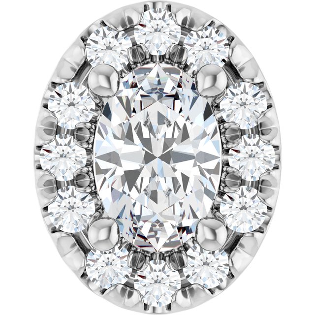 14K White Gold 6×4 mm Oval French-Set Halo-Style Peg Setting