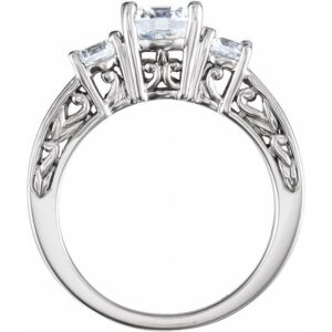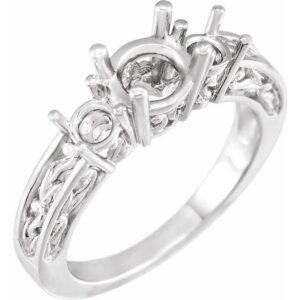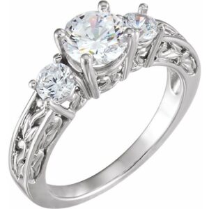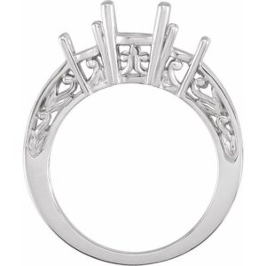 14K White Three-Stone Engagement Ring Mounting