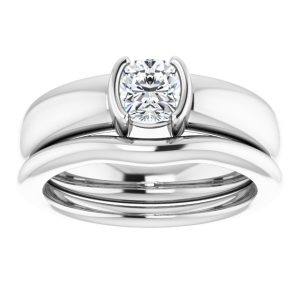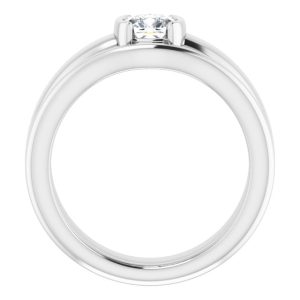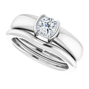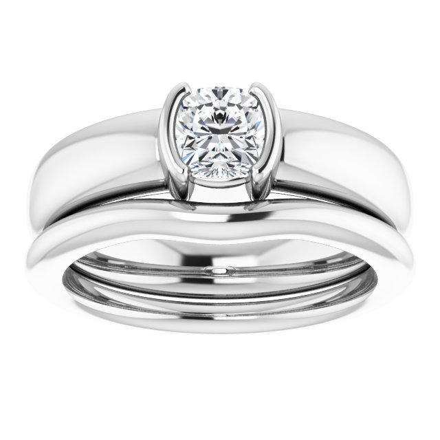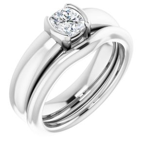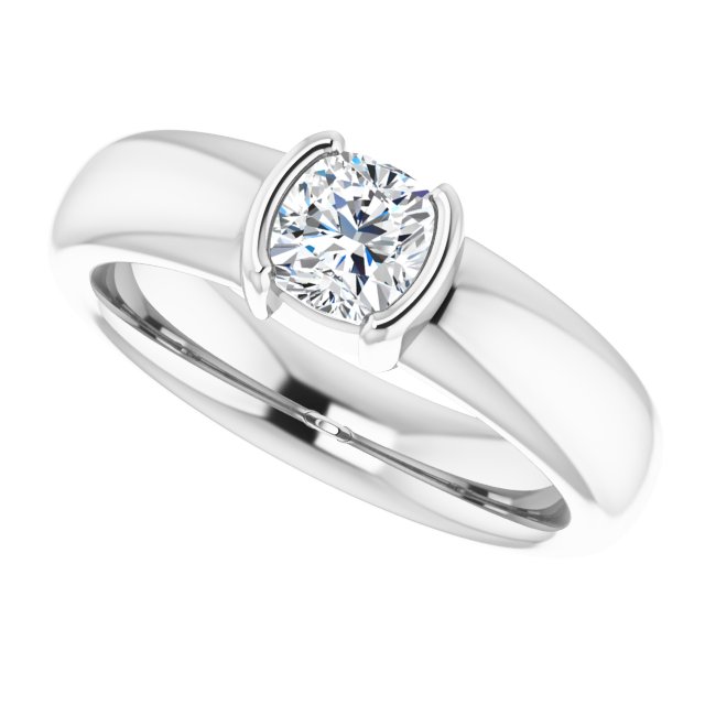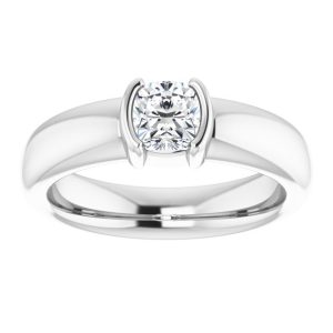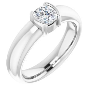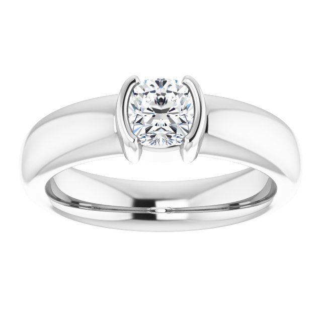 14K White Gold 5×5 mm Cushion Half-Bezel Solitaire Engagement Ring Mounting