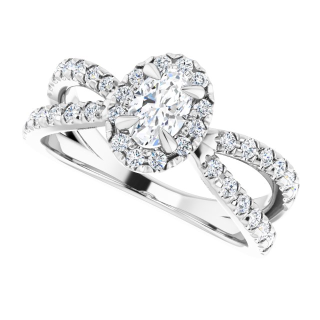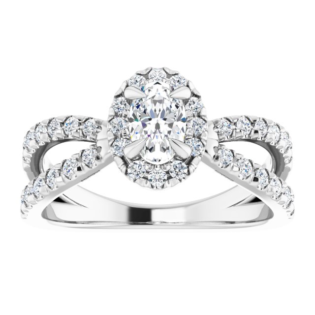 14K White Gold 6×4 mm Oval 3/8 CTW Natural Diamond Semi-Set French-Set Engagement Ring