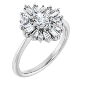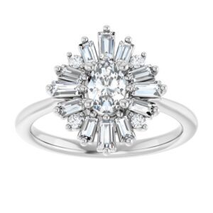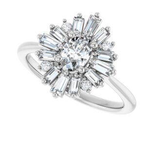 14K White Gold 6×4 mm Oval 1/2 CTW Natural Diamond Semi-Set Engagement Ring