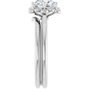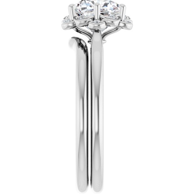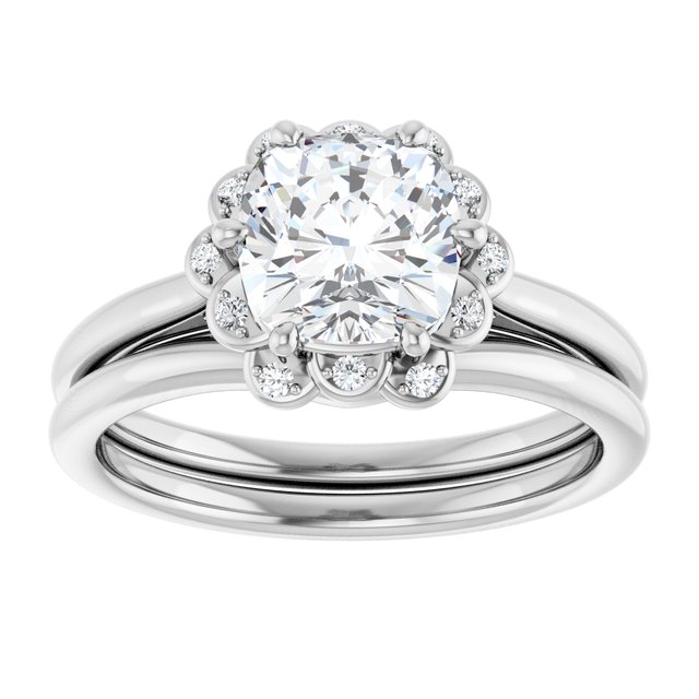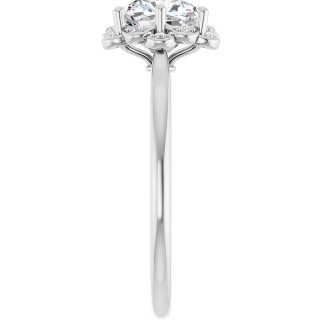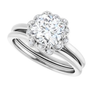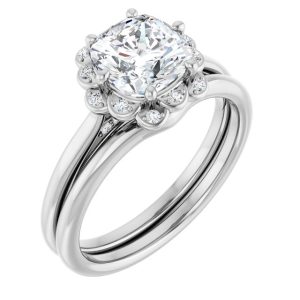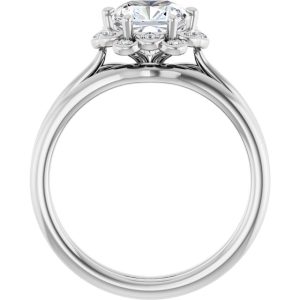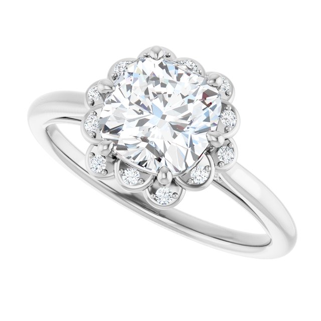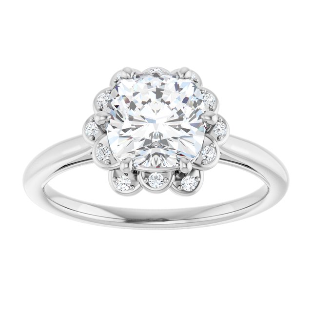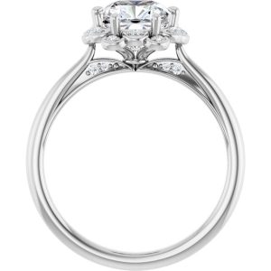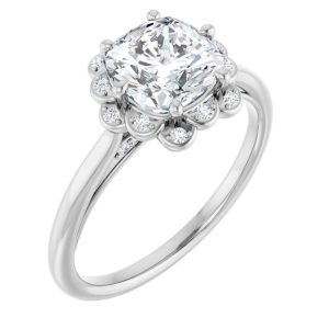 14K White Gold 7×7 mm Cushion Floral-Inspired Engagement Ring Mounting