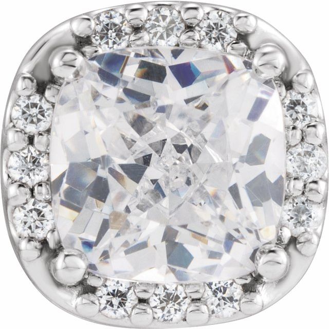 14K White Gold 7 mm Cushion .06 CTW Natural Diamond Semi-Set Halo-Style Basket Setting