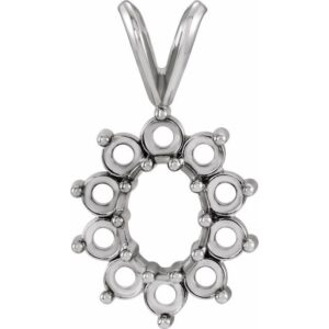14K White Gold 5×3 mm Oval Halo-Style Pendant Mounting