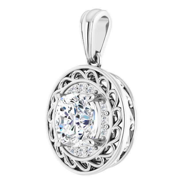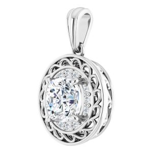 14K White Gold 7 mm Cushion Pendant Mounting