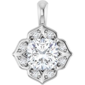 14K White Gold 7×7 mm Cushion Pendant Mounting