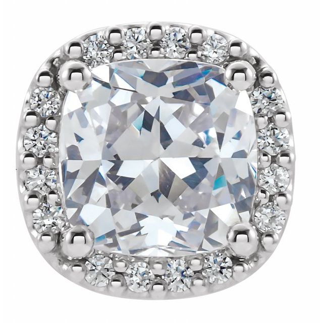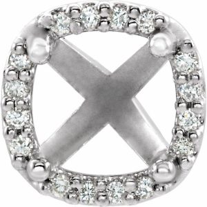 14K White Gold 7×7 mm Cushion 1/8 CTW Natural Diamond Semi-Set Halo-Style Shank Setting