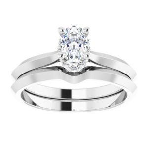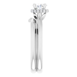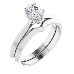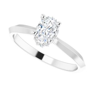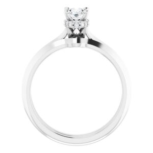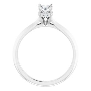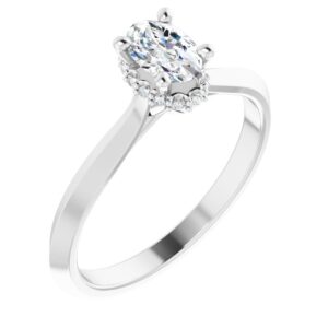 14K White Gold 6×4 mm Oval Hidden Halo-Style Engagement Ring Mounting