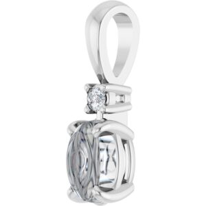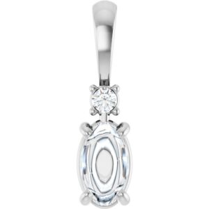 14K White Gold 5×3 mm Oval 4-Prong Accented Cabochon Pendant Mounting