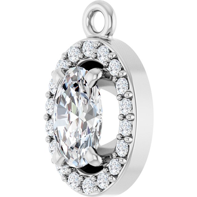 14K White Gold 6×4 mm Oval 1/10 CTW Natural Diamond Semi-Set Halo-Style Dangle