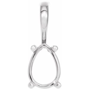 14K White Gold 6×4 mm Pear 4-Prong Cabochon Pendant Mounting