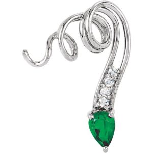 14K White Gold 6×4 mm Pear Accented Slide Pendant Mounting