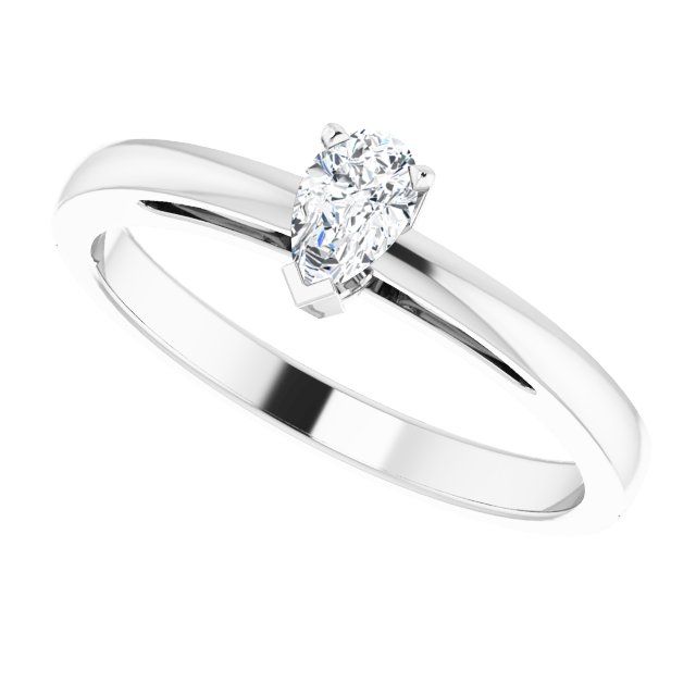 14K White Gold 5×3 mm Pear 3-Prong V-End Solitaire Ring Mounting